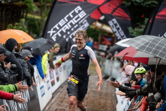 Maxim Chane and Solenne Billouin captured the 14th XTERRA France off-road triathlon elite titles on a rainy day in the Vosges mountains of Xonrupt on Sunday, July 4, 2021.