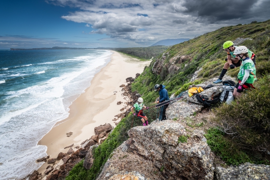 Arriving at the next TA, still wet from the paddle and trek, teams headed out on their mountain bikes. This ride leg included fire trails and an old piece of single track, with the added feature of an abseil off a beach side cliff face. It was the abseil that made this leg, presenting teams with a stunning coastal view as they roped 10m down an exposed cliff face to the beach below. After the ropes the 8hr teams rode towards the finish back in Dunbogan. The 20hr and 36hr teams were only midway through their Wildside journey and continued their ride down into the Crowdy Bay National Park and Johns River State Forest.