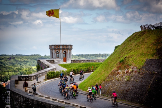 The race starts with a 1.5 kilometer swim around an island in the middle of the Meuse river, follows with a twisting 37-kilometer mountain bike through city streets, past the Citadel, and into fabulous forest trails, and finishes with a hilly 10-kilometer trail run.