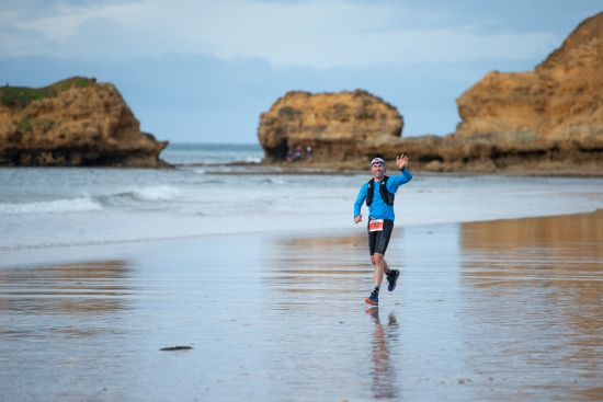 The figure-8 course takes runners from Anglesea to Torquay along the beach, returning along the cliff top tracks and hinterland trails to Moggs Creek and Aireys Inlet, before heading back to Anglesea on the Surf Coast Walk trail, via Point Roadknight.