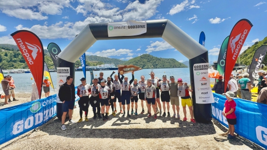 The One NZ GODZONE Chapter 12 finish line is buzzing at Shelly Beach in Picton today, with leading Pure Team 7 Rab winning the race in a finish time of 6 days, 21 hours and 15 minutes.
